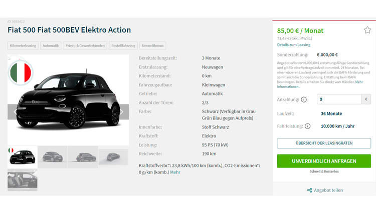 Der Leasingvertrag fr das Elektroauto muss mindestens 12 Monate laufen.