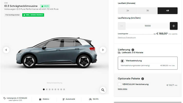 Leasing - VW ID4 Pure fr 197 Euro privat leasen E-Mobilitt. Mit nur wenigen Klicks kannst du dir dein. Auch das Fahrzeug-Leasing wird gefrdert.